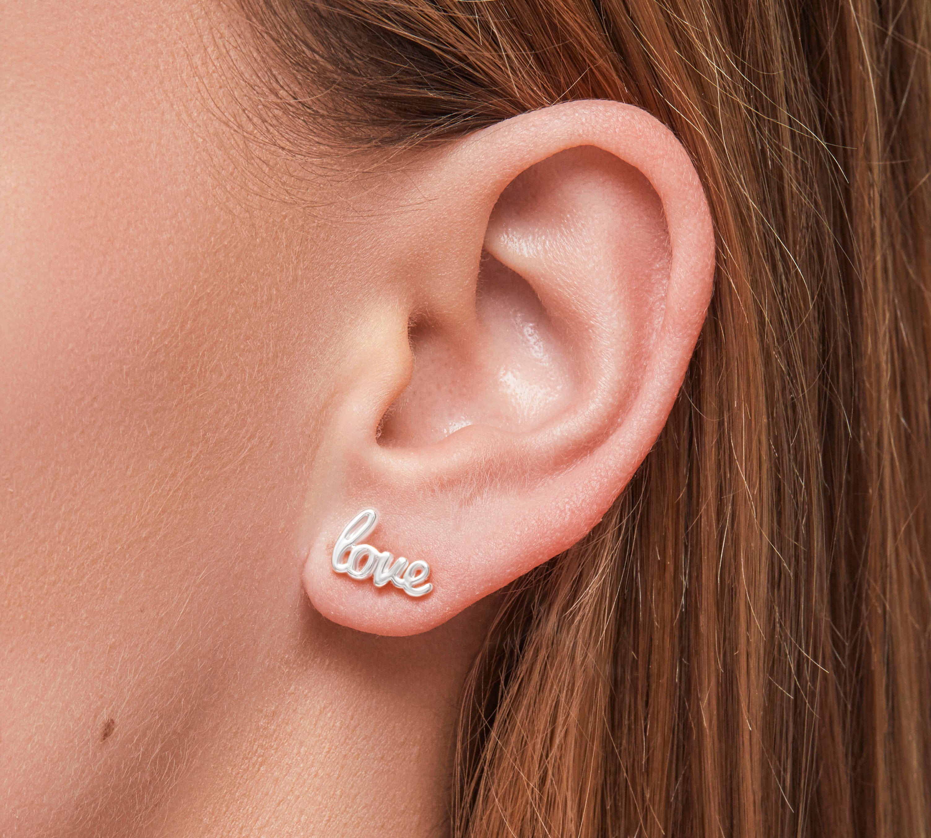 Love Script Earrings in Silver