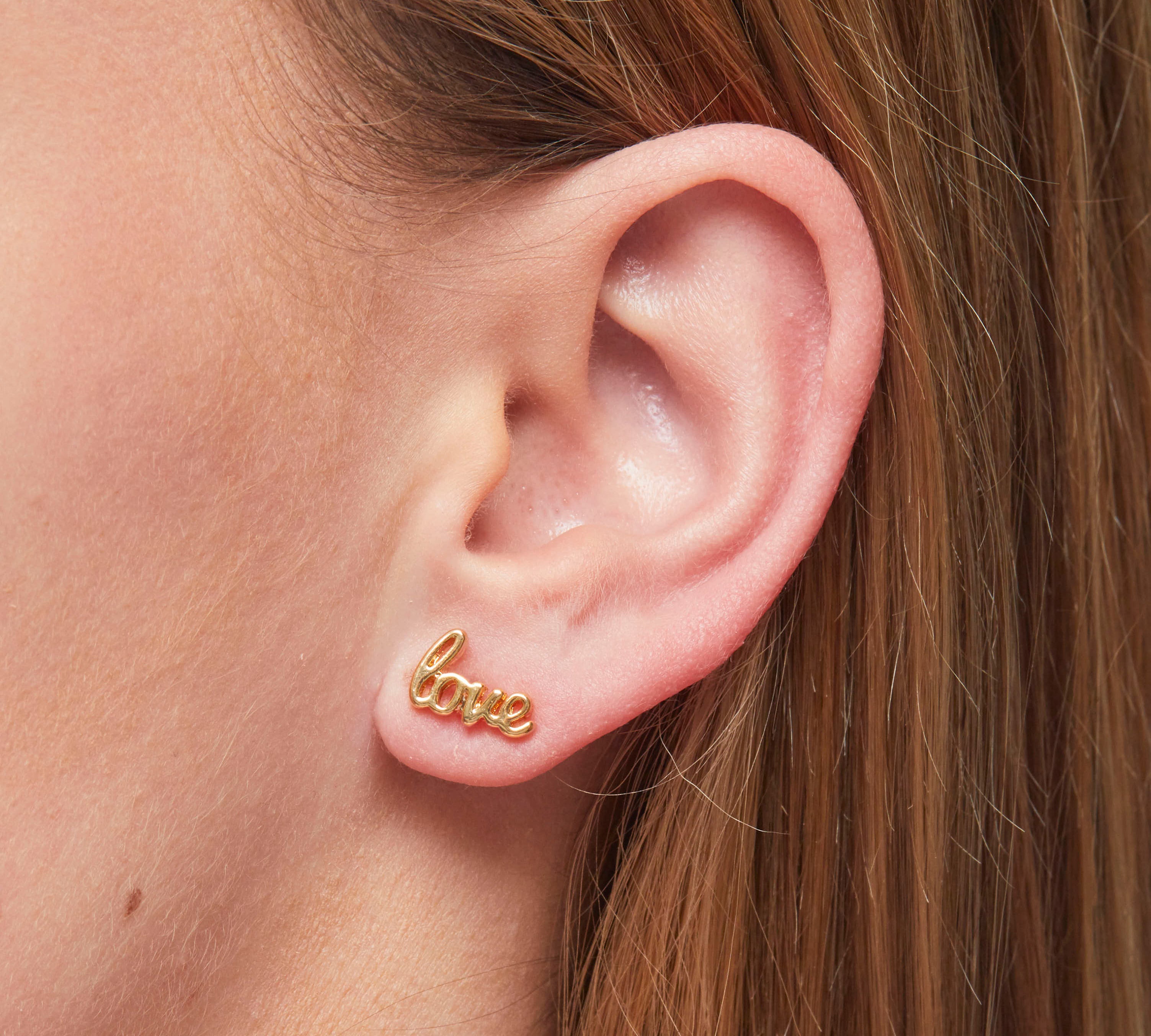 Love Script Earrings in Gold