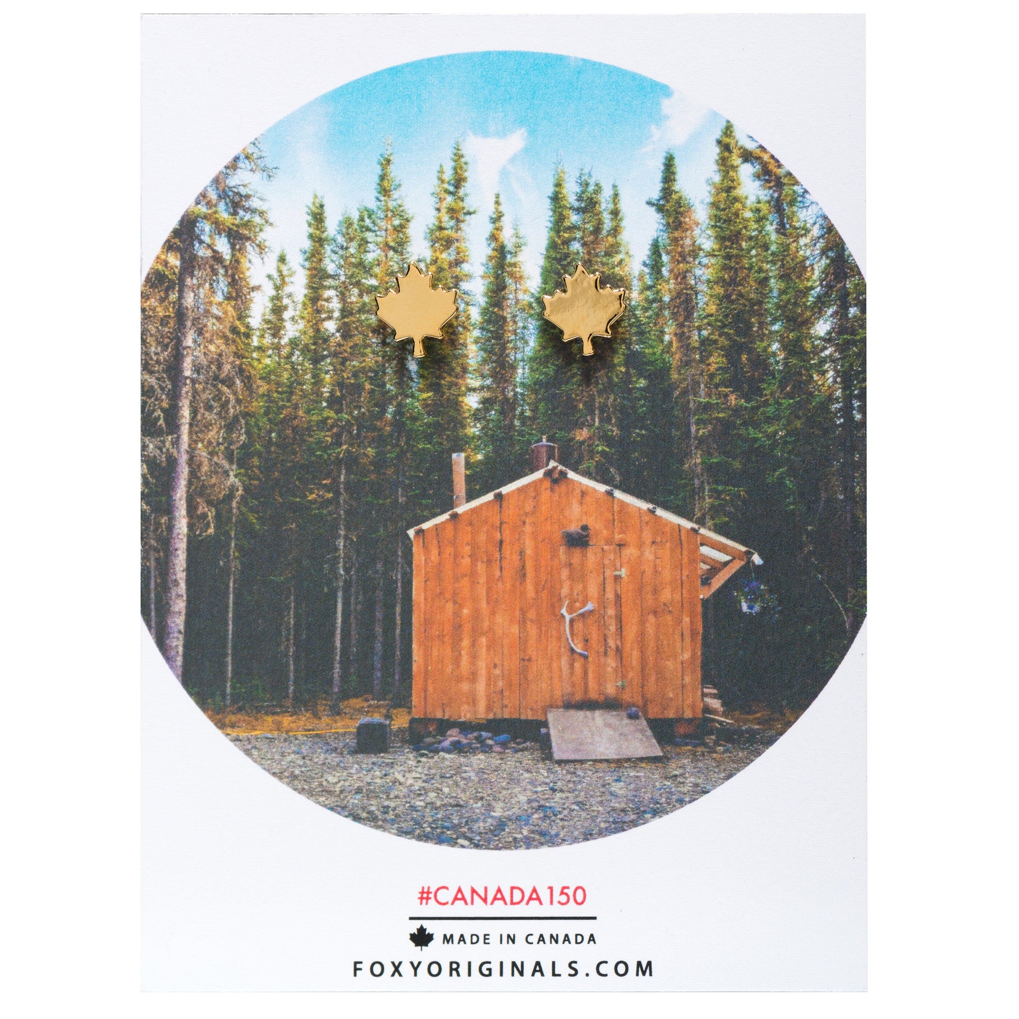Foxy’s Canadian Maple Leaf Studs in Gold are handmade from fine pewter and plated in 14 karat gold. All Foxy jewelry is lead free.